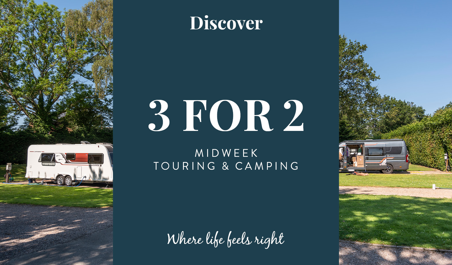 Stay for 3 nights and pay for 2 on midweek touring stays at Discover Parks.