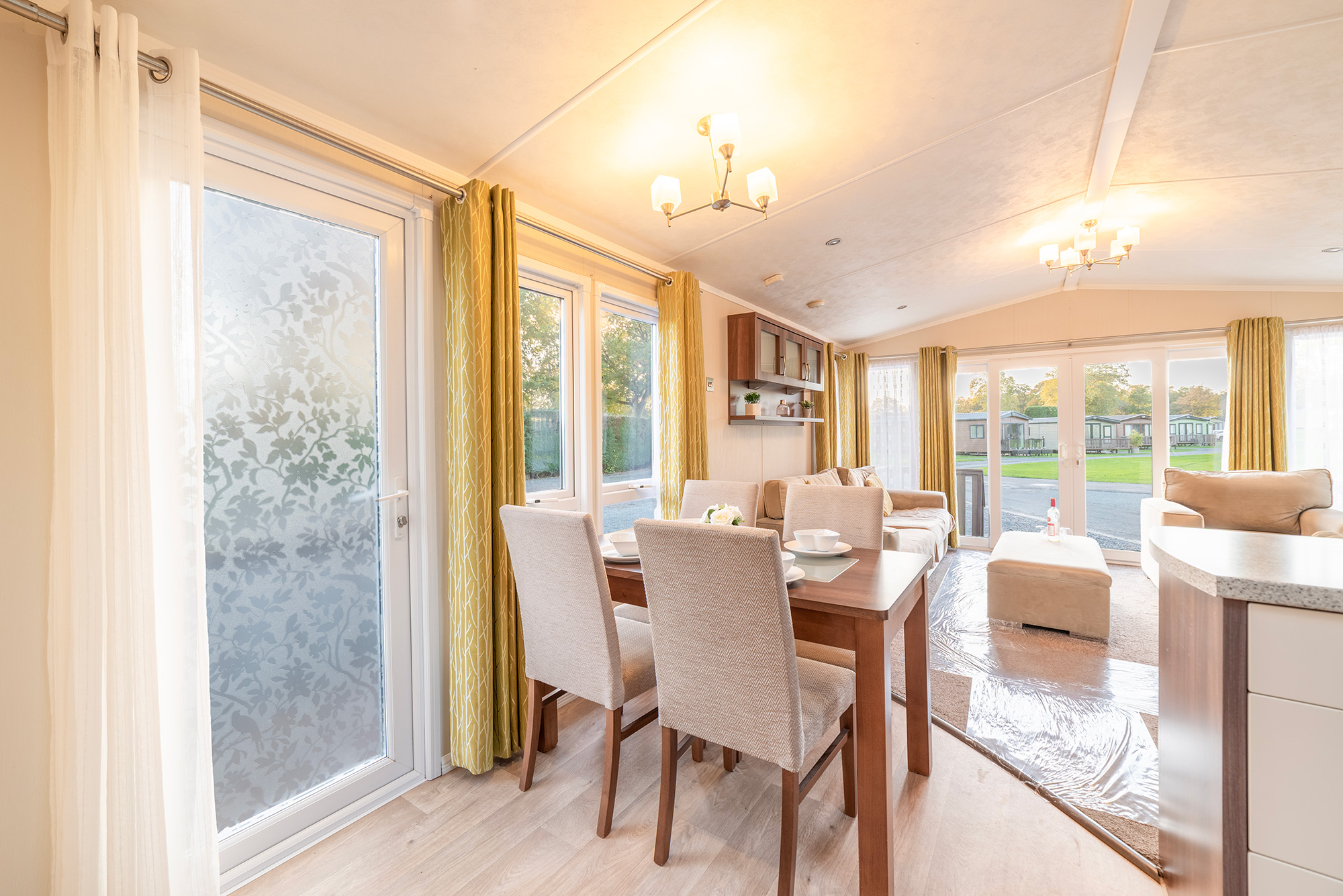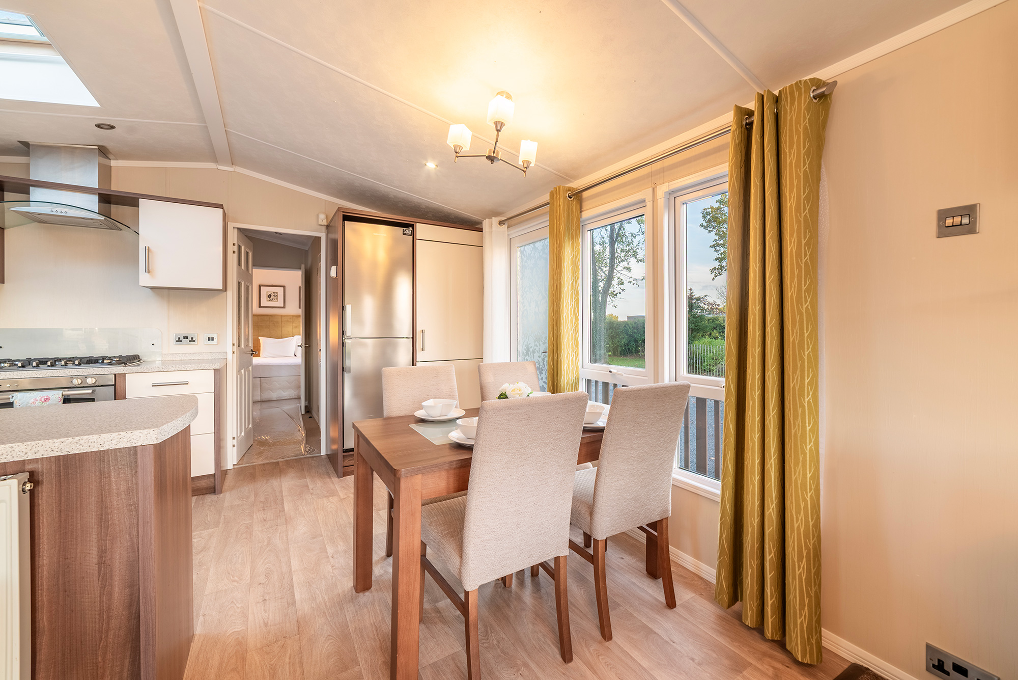 The dining table has four upholstered seats, in front of a generous window. One thing the Pemberton Park Lane has lots of is light, giving it a really spacious feel.